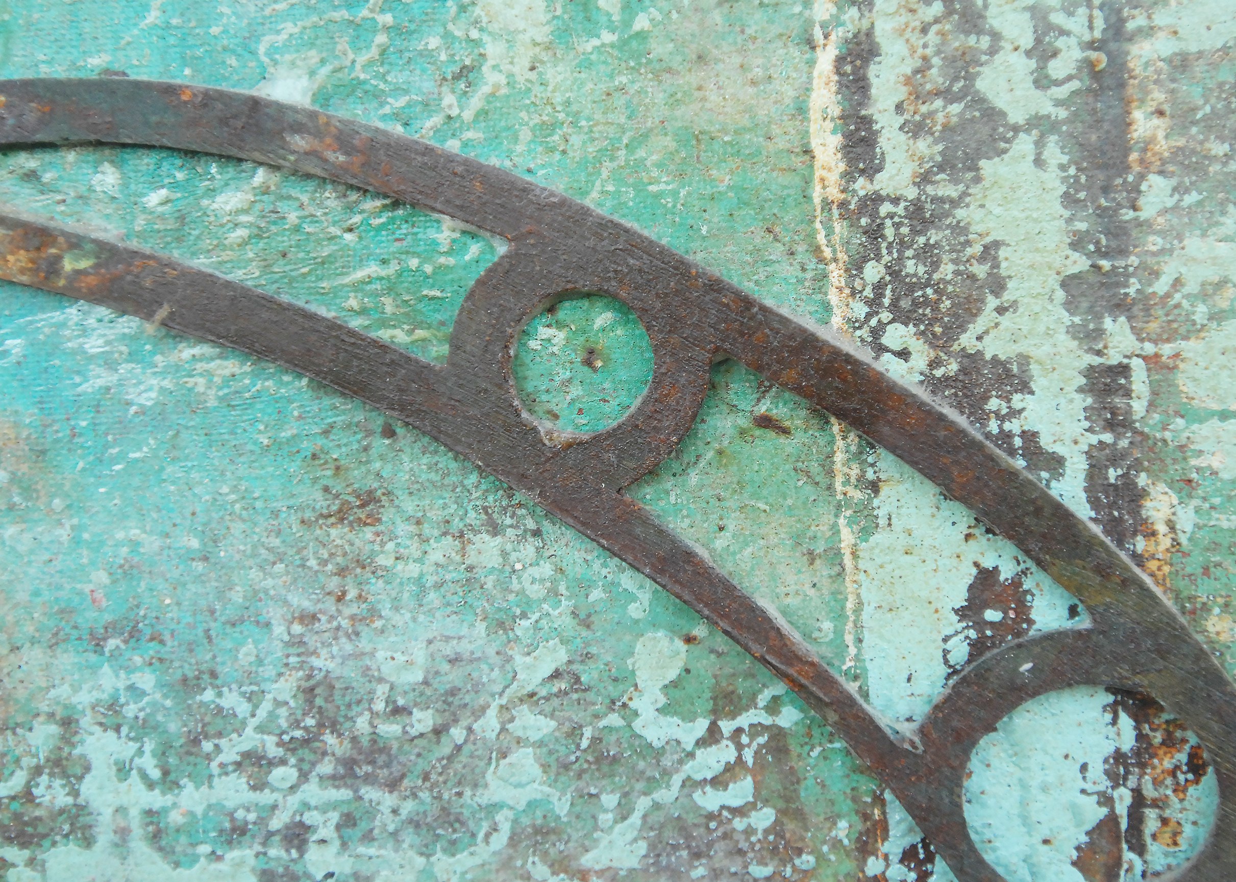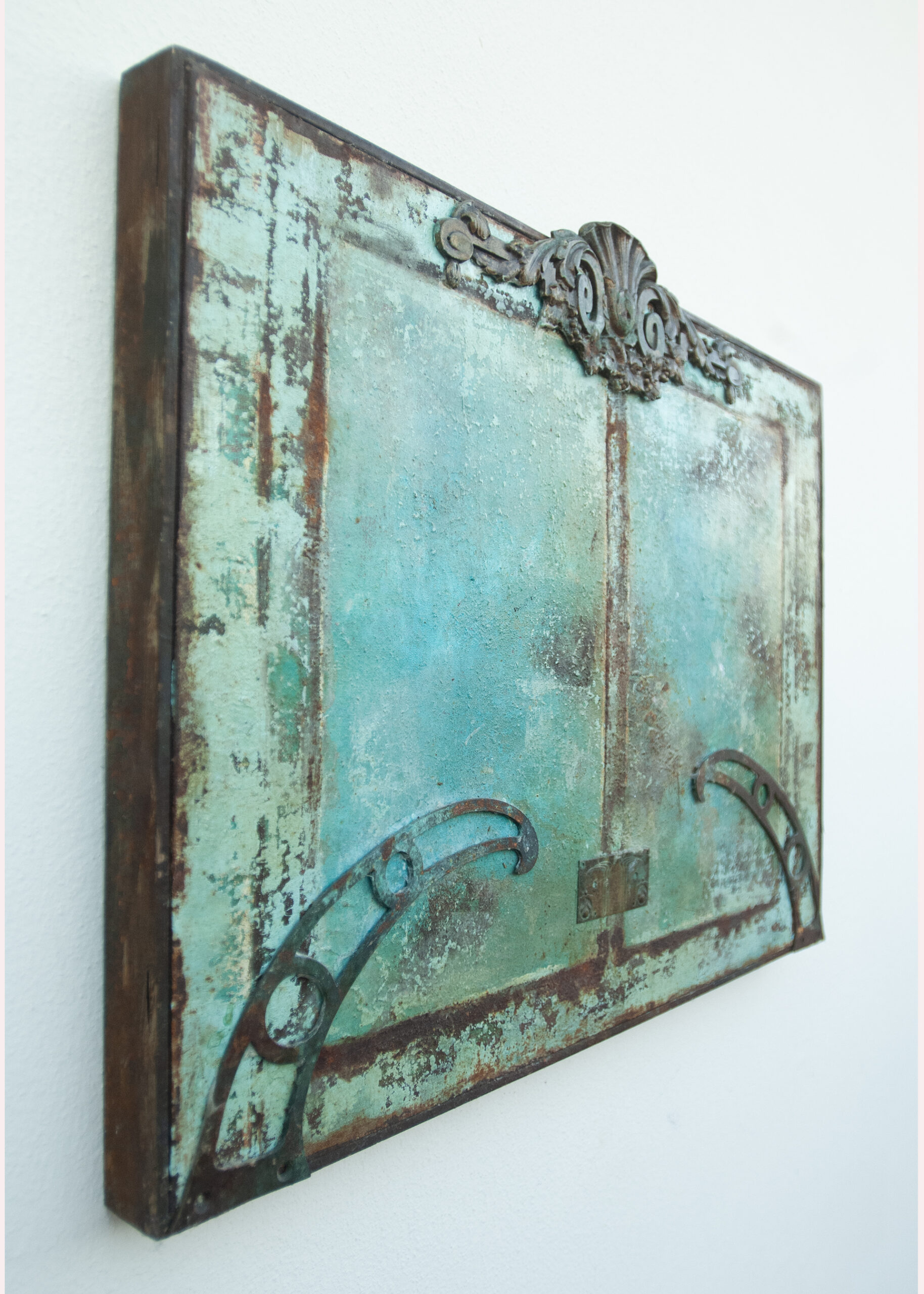 Verdigris and iron non è solo un quadro ma un manufatto ritrovato, un portale verso una storia dimenticata, dove la distruzione (la ruggine) si trasforma in una forma inaspettata e suggestiva di bellezza.